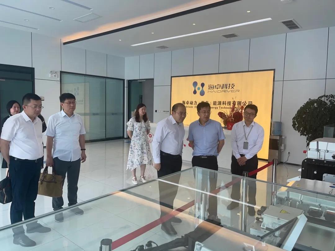 海卓科技王超博士、常務(wù)副總經(jīng)理謝佳平介紹了公司整體情況和自主研發(fā)的燃料電池發(fā)動(dòng)機(jī)配套的自卸車、物流車和冷藏車,以及各個(gè)代系產(chǎn)品、國產(chǎn)化進(jìn)程情況,隨后李局長一行參觀了氫燃料電池發(fā)動(dòng)機(jī)總裝工廠和加氫站。