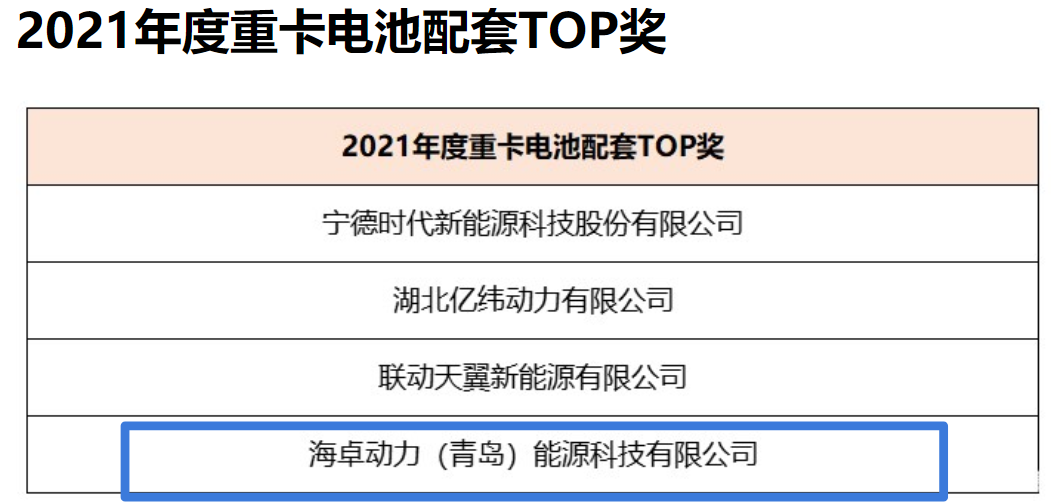 6月28-29日,“2022第五屆中國新能源汽車產(chǎn)業(yè)大會暨第二屆中國新能源重卡產(chǎn)業(yè)生態(tài)大會”在成都隆重舉辦。海卓科技受邀參加,并榮獲第六屆中國新能源商用車“金熊貓獎”—2021年度重卡電池配套TOP獎。同時入圍的還有寧德時代等三家企業(yè)。海卓科技是入圍該獎項的唯一一家燃料電池企業(yè)。