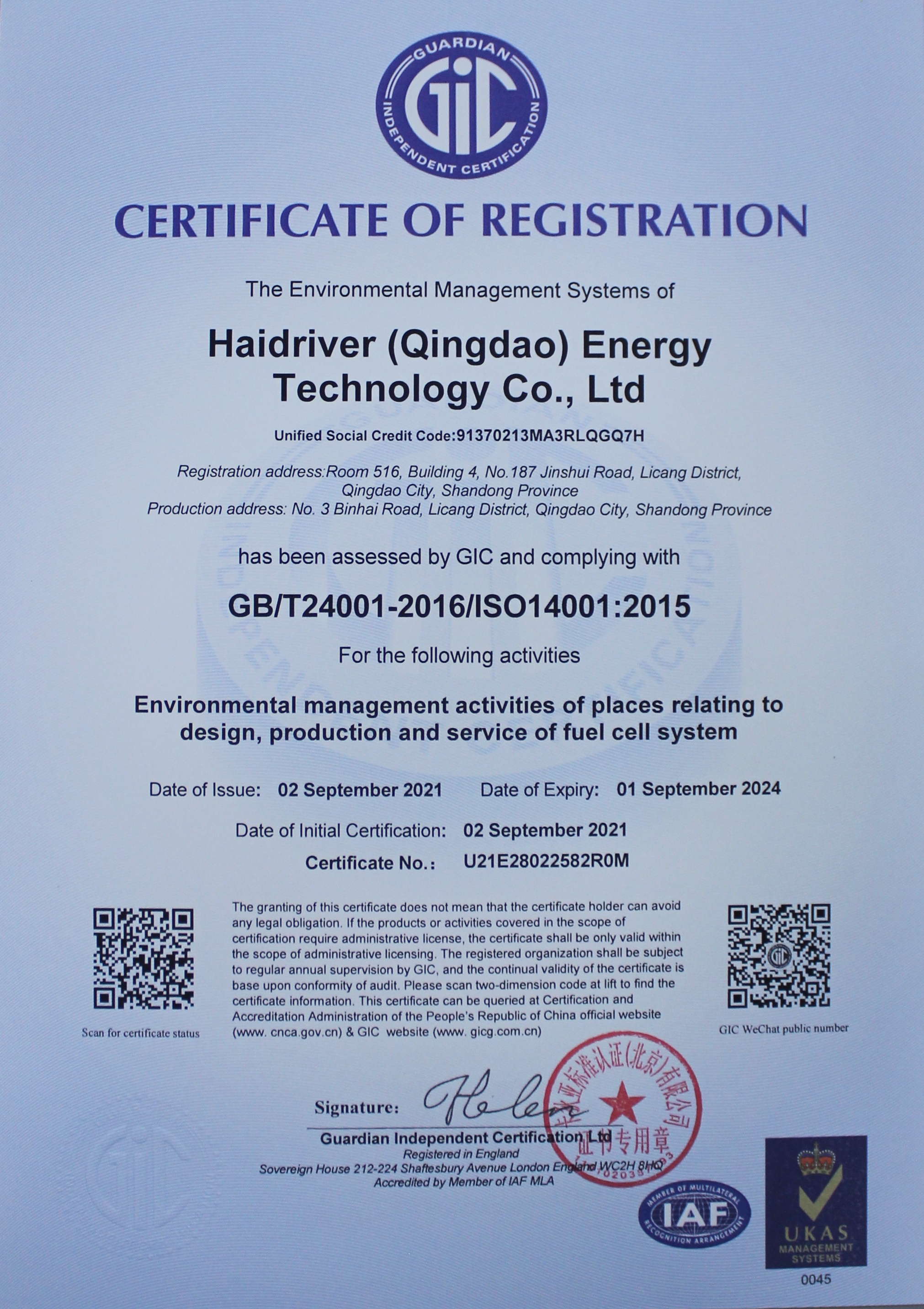 IATF16949: 2016 Quality Management System Certification; ISO14001: 2015 Environmental Management System Certification; ISO45001: 2018 Occupational Health and Safety Management System Certification.